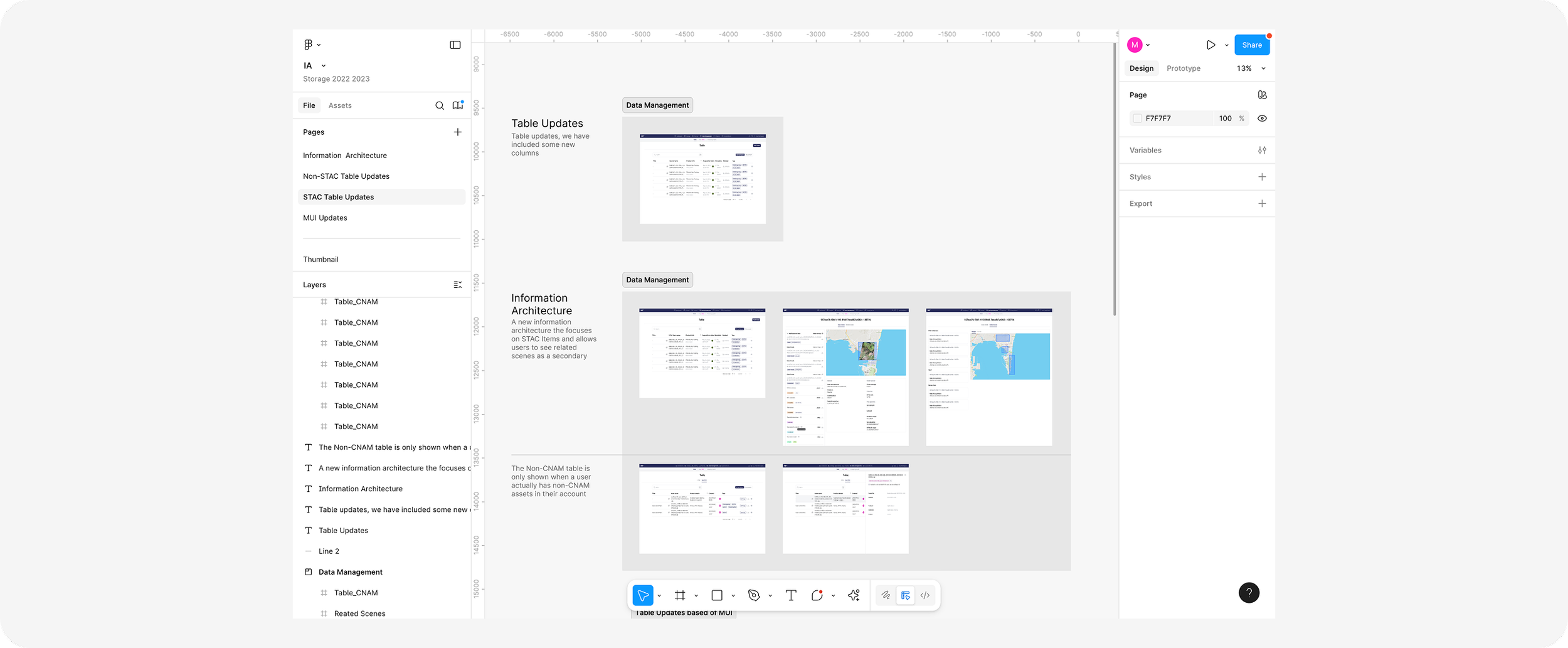 Created Figma prototypes showing sortable tables, tag management UIs, and multi-level filtering flows, ensuring compatibility with the new Asset Service.
